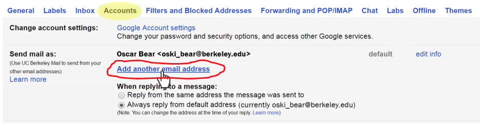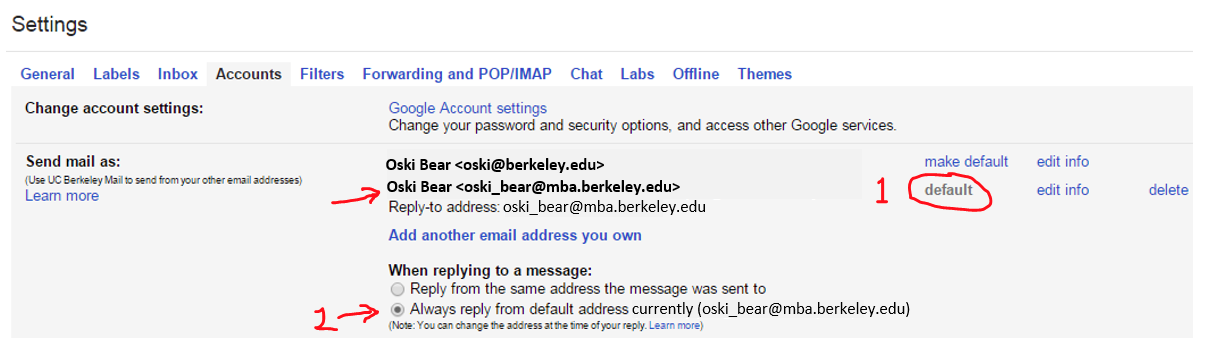 6. Be sure to also select the radio button “Always reply from default address  ( currently xxx@mba.berkeley.edu)".