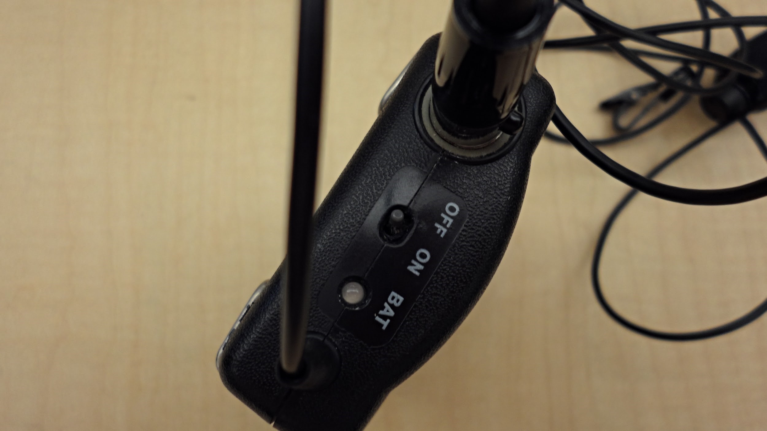 Locate the volume knob labeled Wireless on the microphone panel and turn up. Depending upon the room the panel could either be located on the back wall of the stage, side of the podium, or workbench. *Crackling and/or weak audio can result from a low battery life. Replacing the battery can resolve this issue.