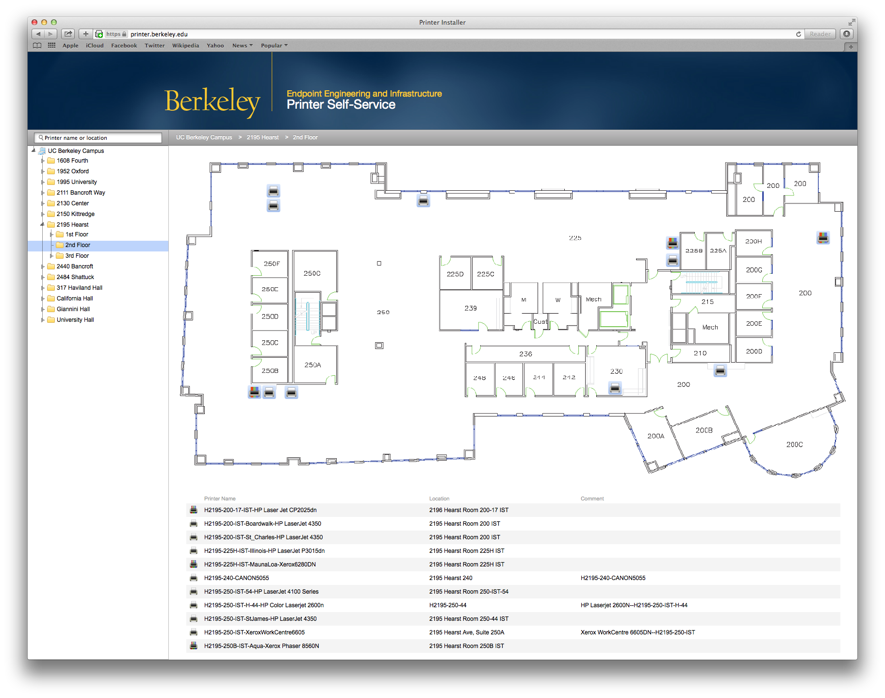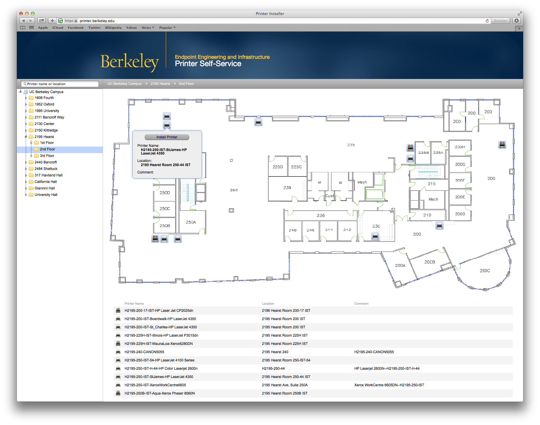 Printer Installer is a campus service to make adding, configuring, and maintaining networked printers easier. Once the PrinterLogic Client software has been installed on your managed Berkeley Desktop PC or Mac, simply visit: https://printer.berkeley.edu/ to discover and add the printers you need.