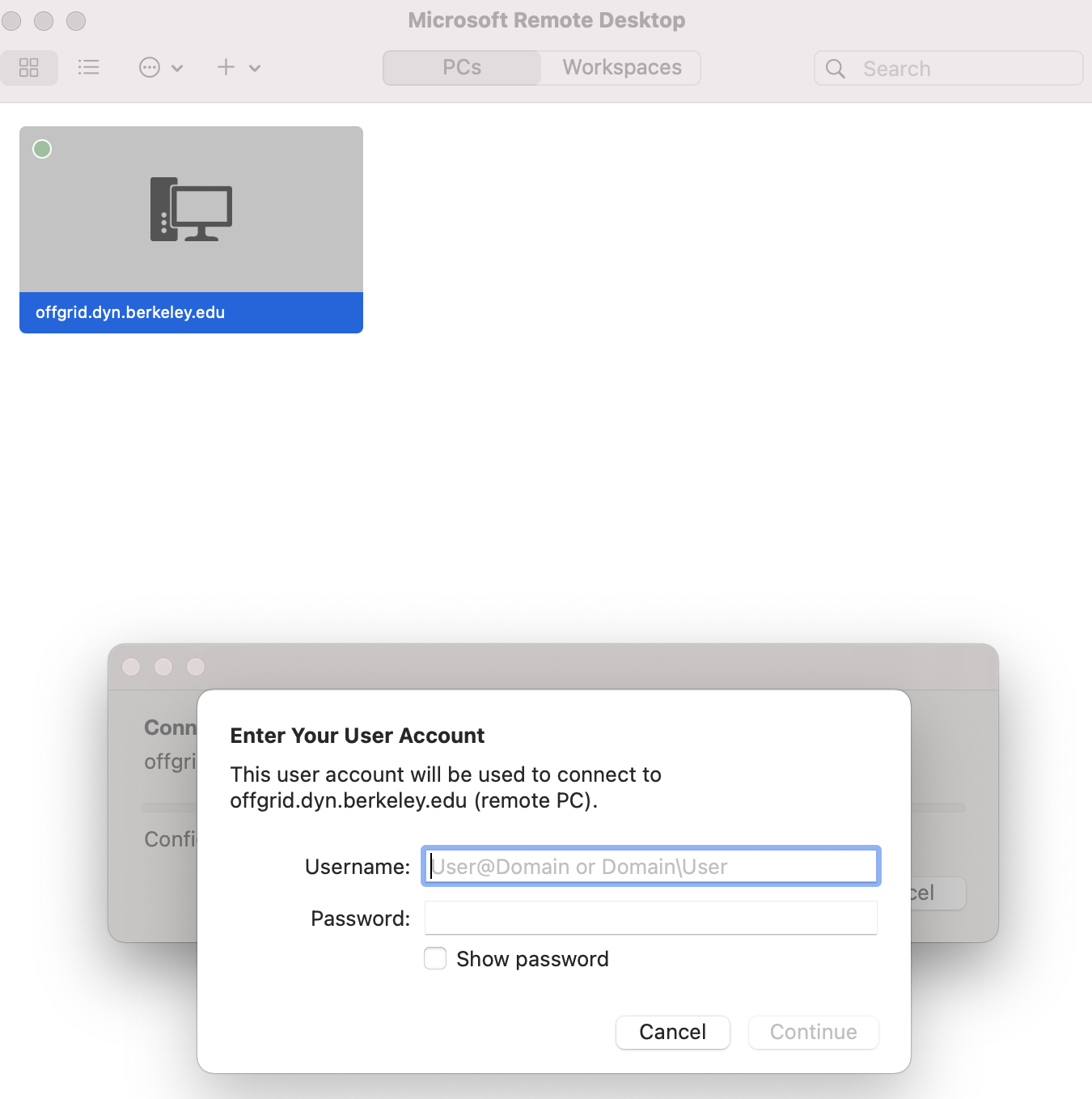 UC Berkeley Information Security Policy does not allow broad access to a remote desktop from the public Internet. Best practices is to restrict access with the use of the Campus Remote Desktop Gateway service. The following guide explains how to configure a computer to connect to a Windows computer using the Campus Remote Desktop Gateway service.