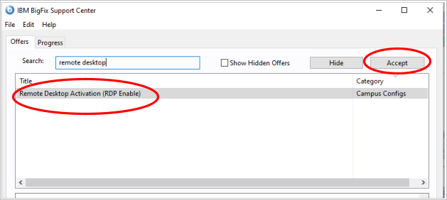1a) Enable Remote Desktop Protocol (RDP) Using the BigFix Offer on a Managed Computer (Berkeley Desktop)