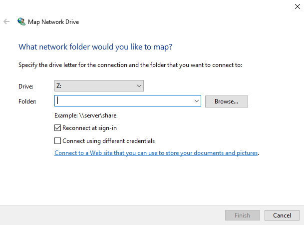 When you are done, click Finish and the shared drive(s) should appear in the File Explorer.