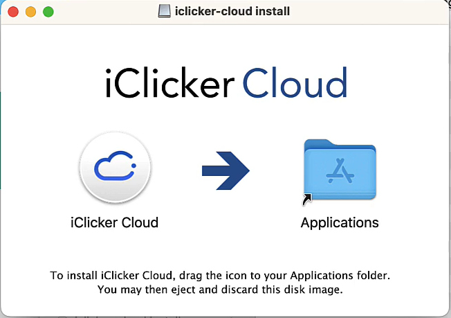 - For Mac users, double-click on the file. A pop-up will appear that will ask you to drag the iClicker Cloud install file to your Applications folder, which should be found under your Desktop folder.