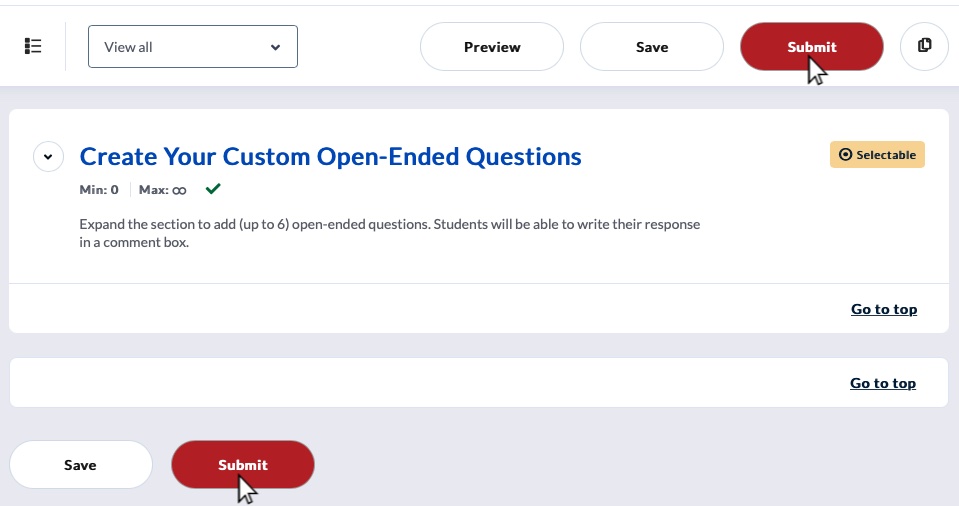- Click the “Submit” button either from the top menu or at the bottom of the page.