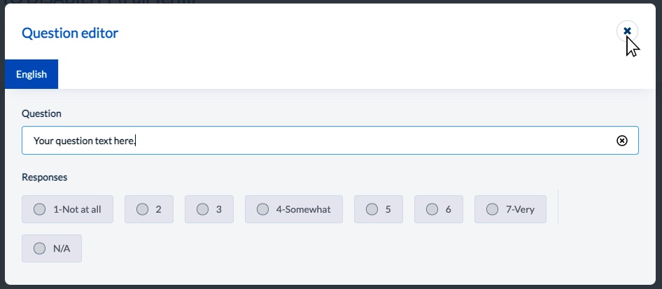 - Clicking "Customize" will open a question editor dialogue box. Enter your question text into the text box. When you're finished entering your question close the question editor by clicking the X in the upper right corner.