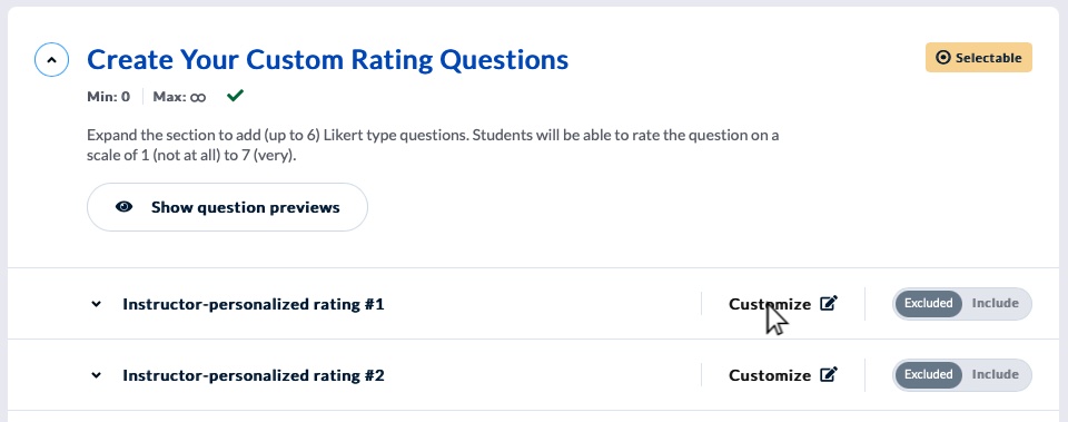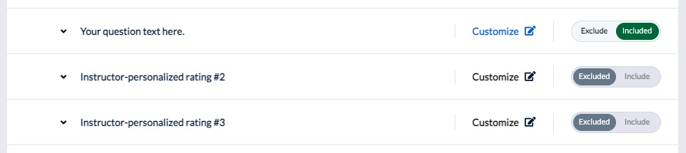 If you're being evaluated for multiple courses and/or sections you can add different personalized questions to each evaluation, or draft your questions once and copy them to your other evaluations.