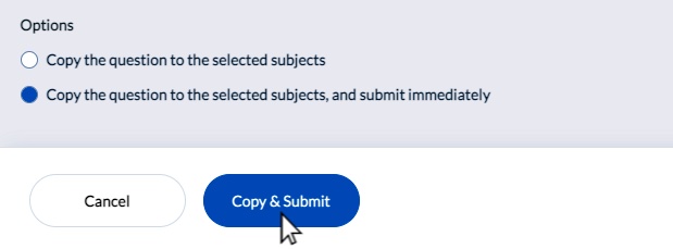 - Under "Options" select "Copy the question to the selected subjects, and submit immediately" and then click "Copy & Submit."