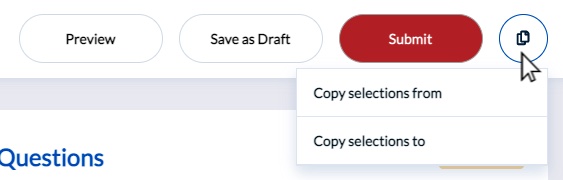 - On the question personalization page click on the additional options icon next to the Submit button and select "Copy selections from."