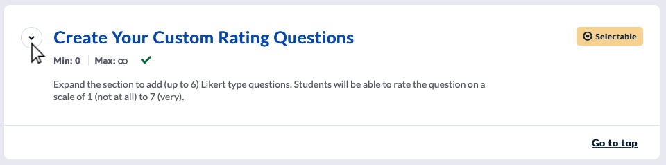- Expand the section where you want to add a question by clicking the down arrow icon to the left of the section title.