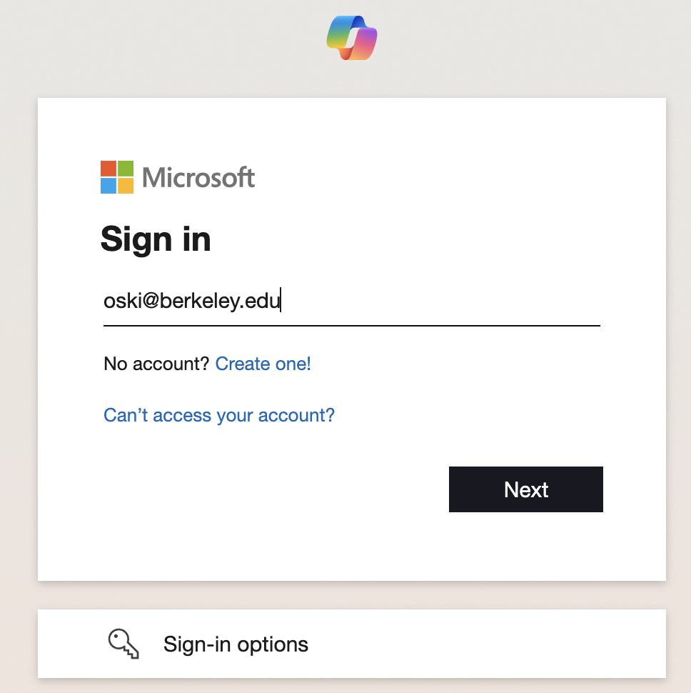 Click on Sign In and you will be taken to the Microsoft Sign in page. Enter your UC Berkeley email address.
